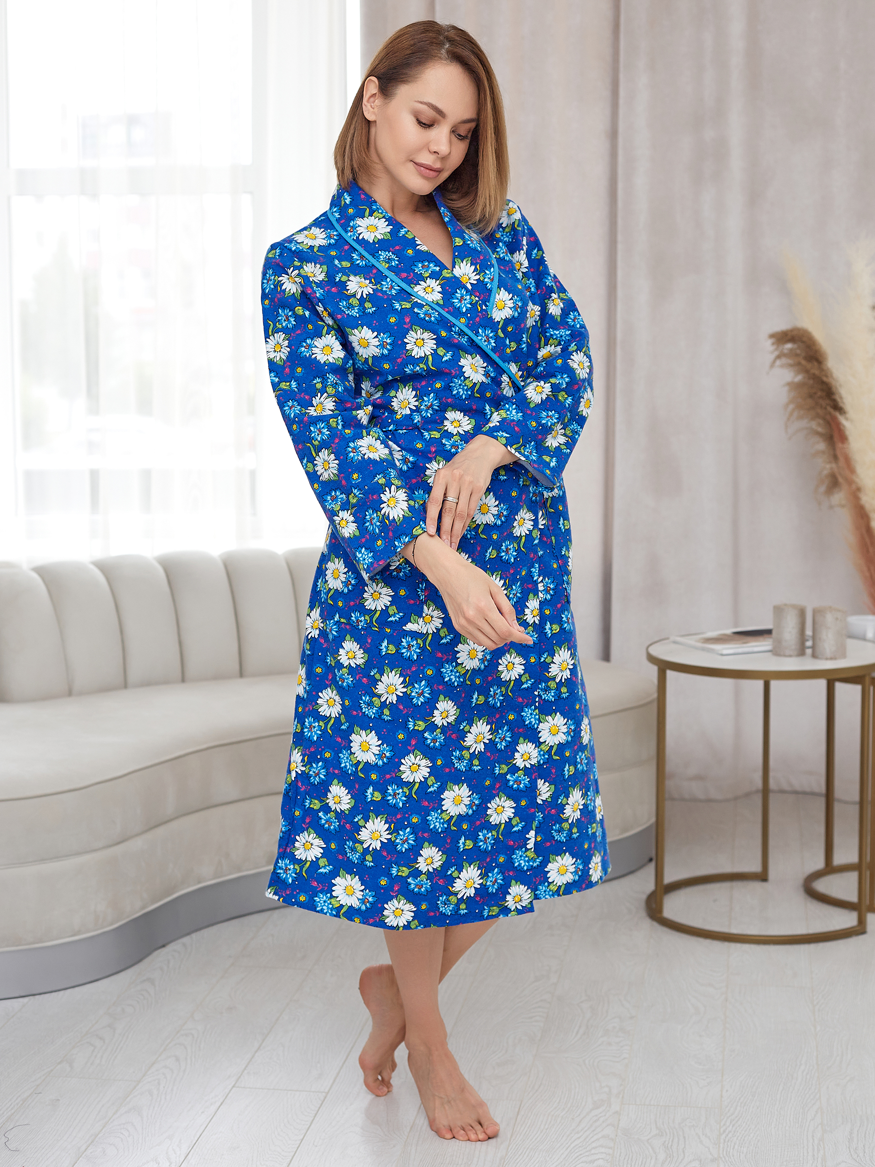 Женский домашний халат хлопок запашной теплый выполнен из мягкой дышащей ткани мягкой фланели.