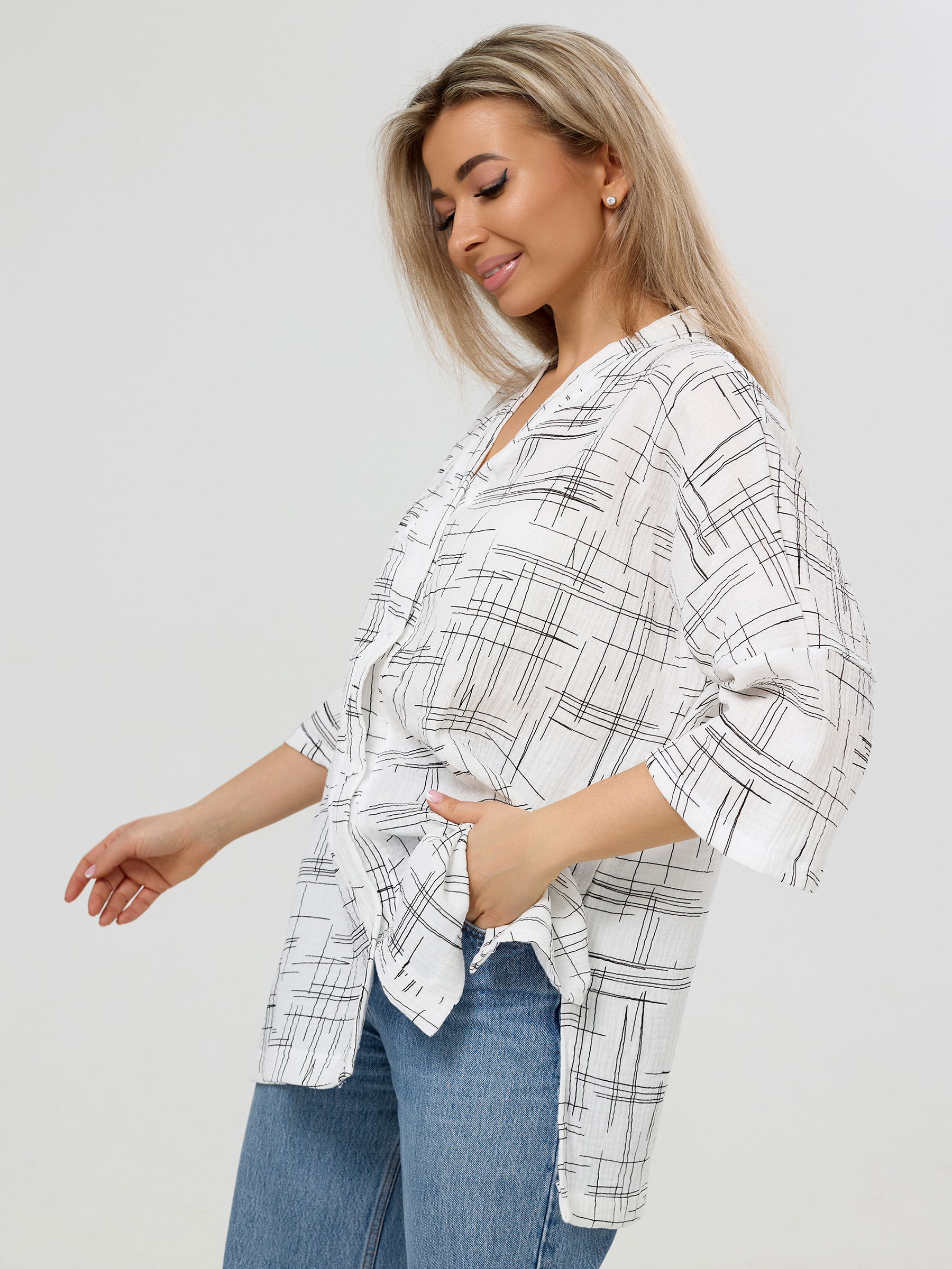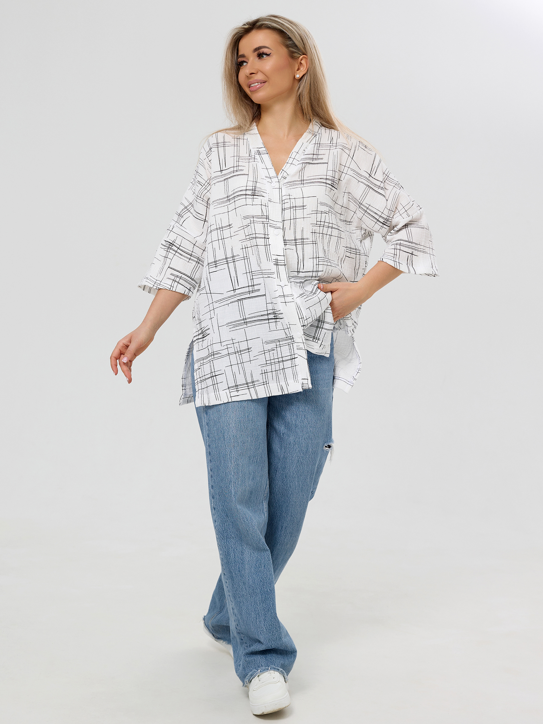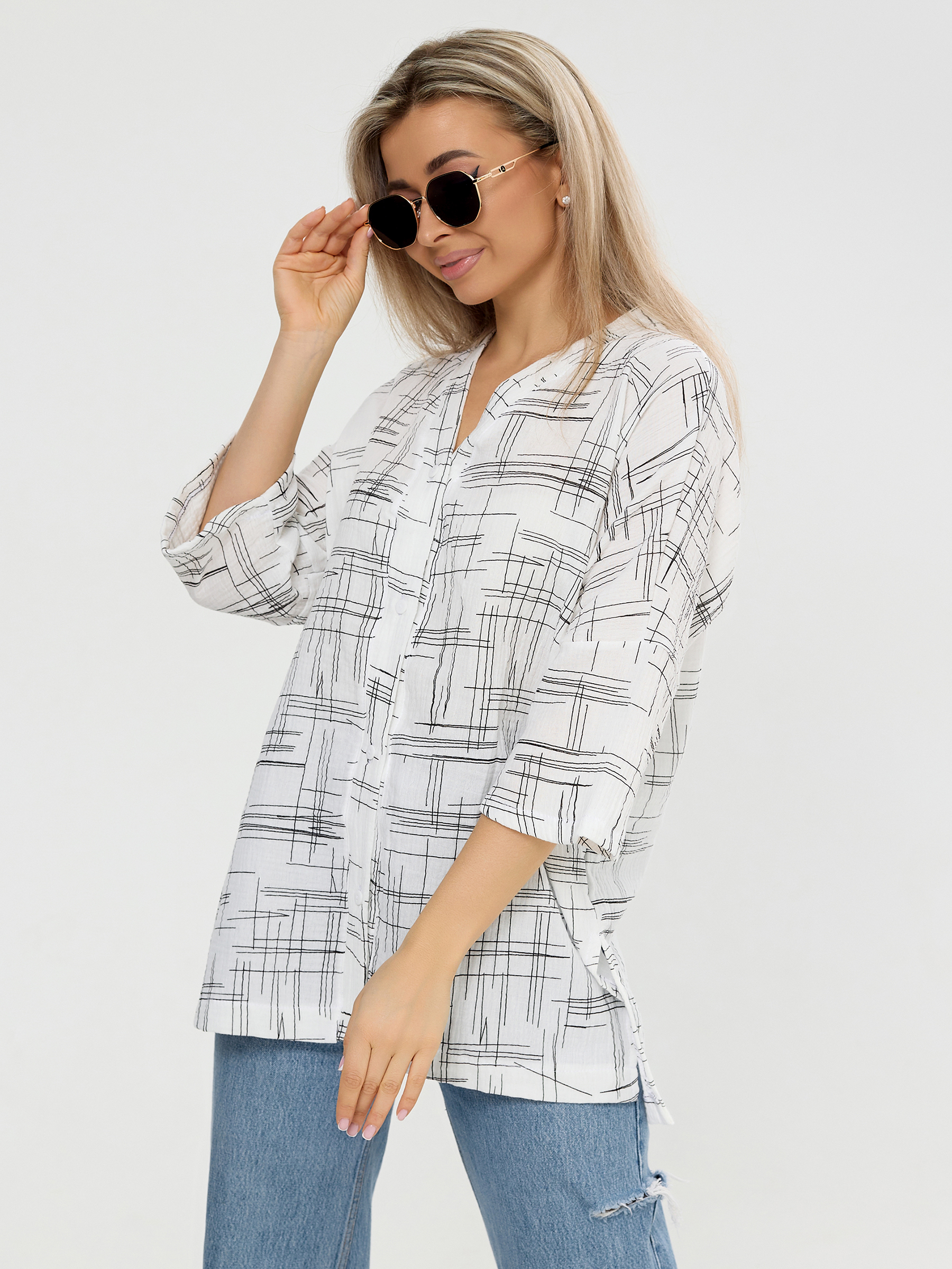 Летняя муслиновая туника на пуговицах для женщин.